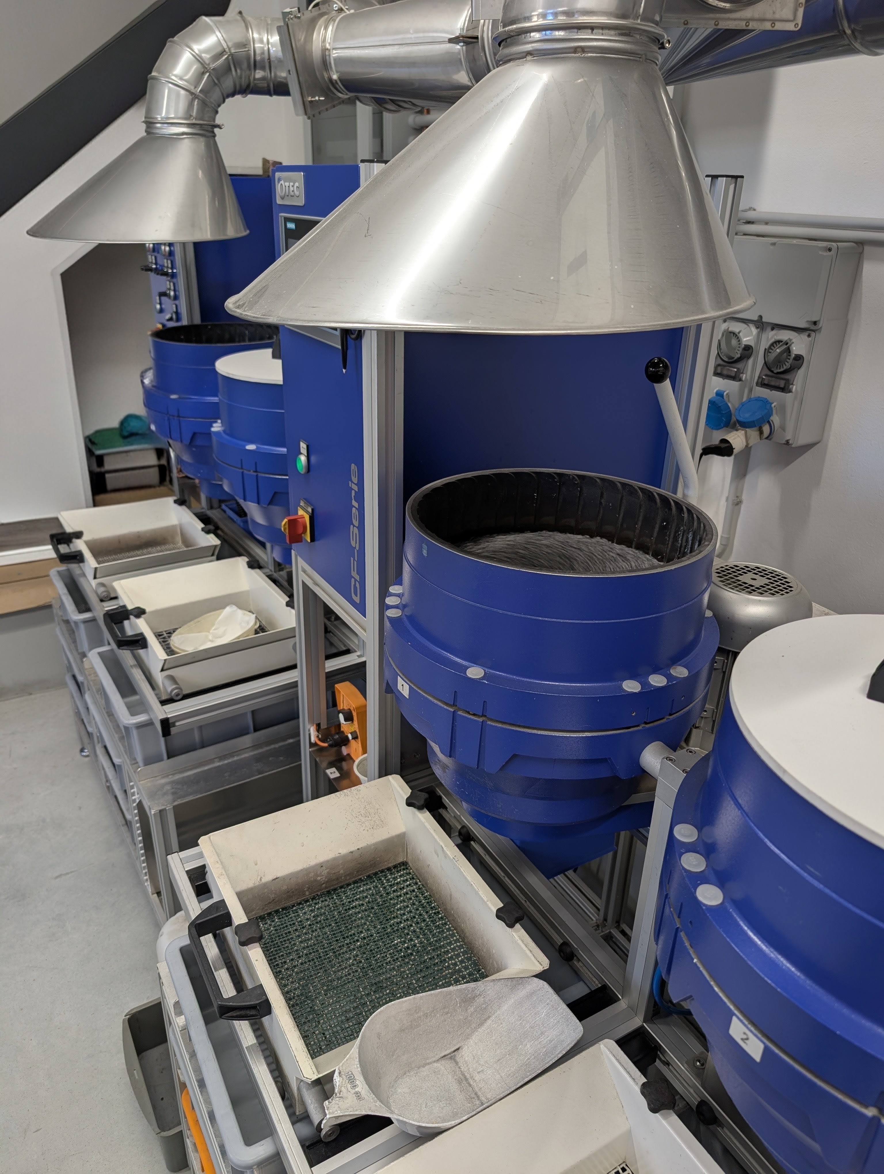 Impianto galvanico e buratti per pre‑pulimentatura e lucidatura.